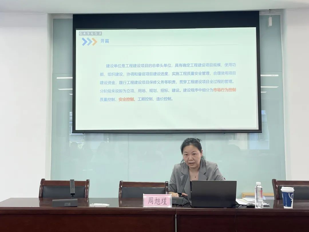 會上,周旭瑾針對市旅發(fā)公司作為建設(shè)單位的市場主體角色,從責(zé)任體系建設(shè)、建筑市場行為和安全生產(chǎn)文明施工管理三個方面,帶領(lǐng)大家深入解讀建設(shè)單位工程建設(shè)質(zhì)量安全責(zé)任政策。通過法律條例、違法案例、日常監(jiān)督檢查清單等,多維度、多方面和與會人員交流感想,同時從當(dāng)前的安全生產(chǎn)形勢及我市安全生產(chǎn)重點(diǎn)工作等內(nèi)容對公司日常安全生產(chǎn)工作進(jìn)行了指導(dǎo),并提出了切實(shí)可行的管理建議。